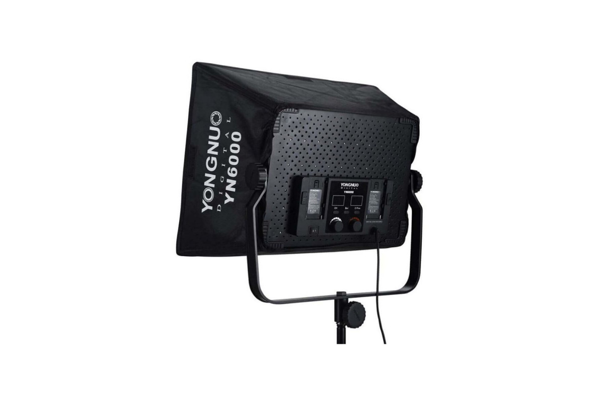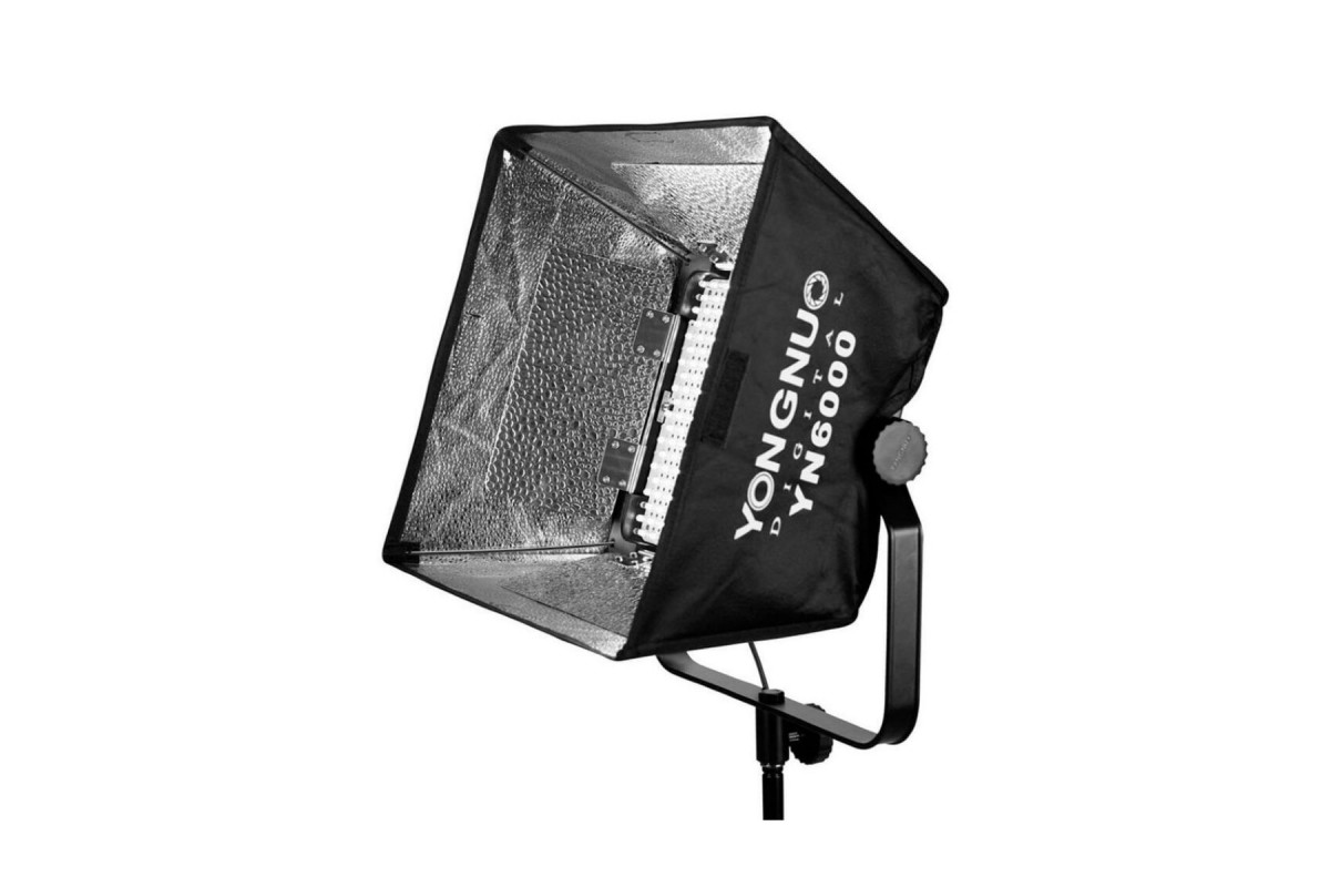 LED-панель размером 41х41см на U-образном кронштейне с возможностью поворота источника на 360 градусов в вертикальной плоскости. Yongnuo YN6000 комплектуется дополнительным софтбоксом, который позволит равномерно распределить световой поток по всей поверхности светильника и снизит дискомфорт от ярких точечных источников света на глаза людей при видео- и фотосъемке.