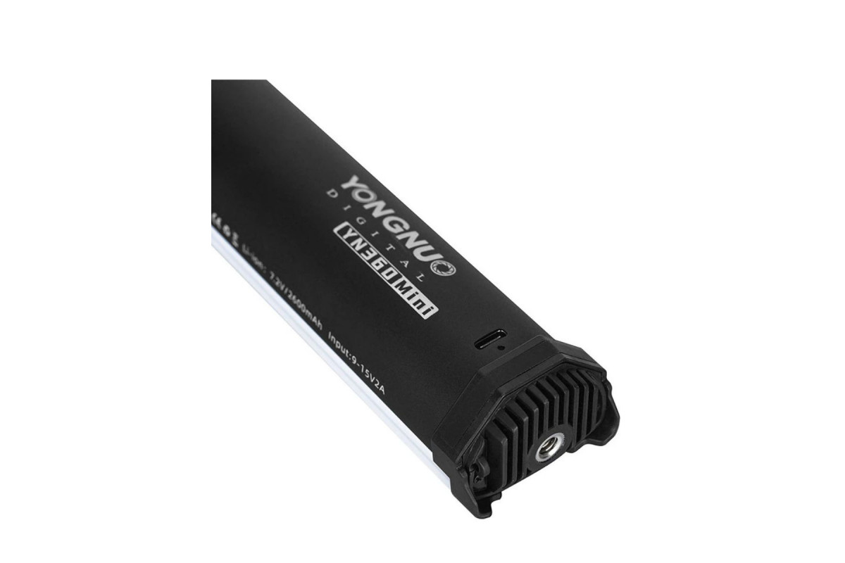 Компактный светодиодный осветитель с большим количеством светодиодов. Вытянутая форма позволяет комфортно держать его в руке. Благодаря магнитному креплению лампу можно закрепить на любой металлической поверхности. Цветовая температура регулируется от 2700K до 7500K. Регулировку цвета можно производить с помощью диммера, расположенного на рукоятке. Для удаленной настройки и регулировки можно использовать приложение. Осветитель оборудован протоколом высокоскоростной связи в диапазоне частот 2.4 ГГц. Эффективное расстояние для удаленной работы составляет 15 метров. YN-360 MINI отличается компактными размерами и портативностью. Его корпус выполнен из легкого и прочного алюминия. Осветитель оснащен вместительным аккумулятором емкостью 2600 мАч. Одного заряда может хватить до полутора часов полноценной работы на полной яркости