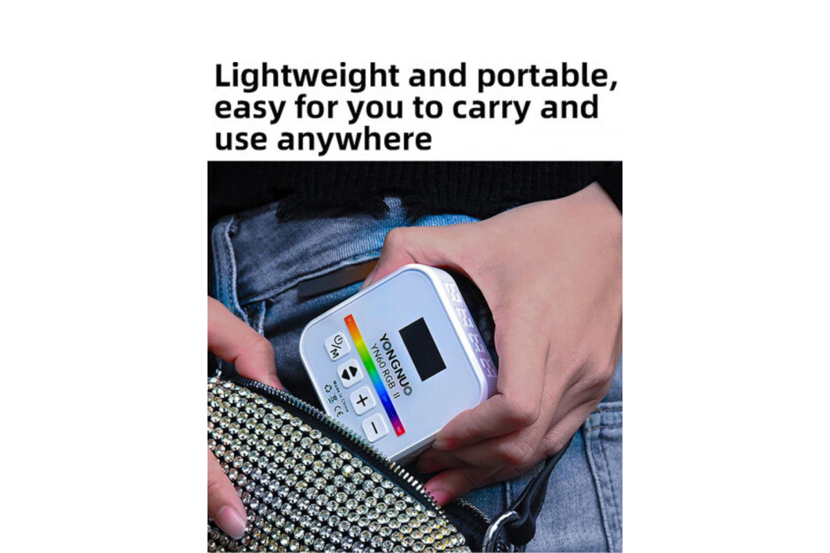 Управлять Yongnuo YN60RGB II просто и удобно. Интуитивно понятный интерфейс и наличие различных режимов позволят быстро настроить осветитель под ваши нужды. Осветитель идеально подходит для фото- и видеосессий, создания профессионального контента для социальных сетей, а также для съемки мероприятий.