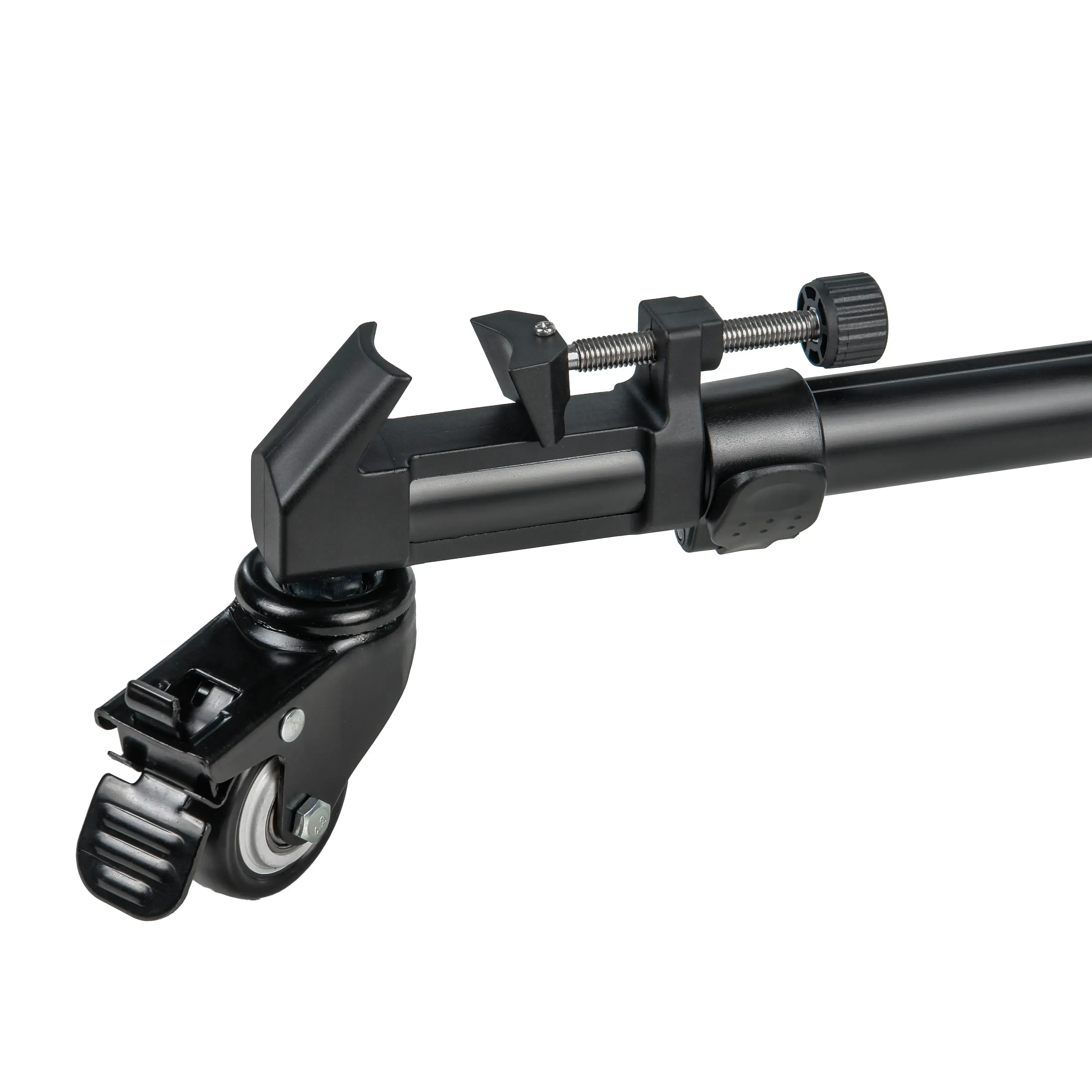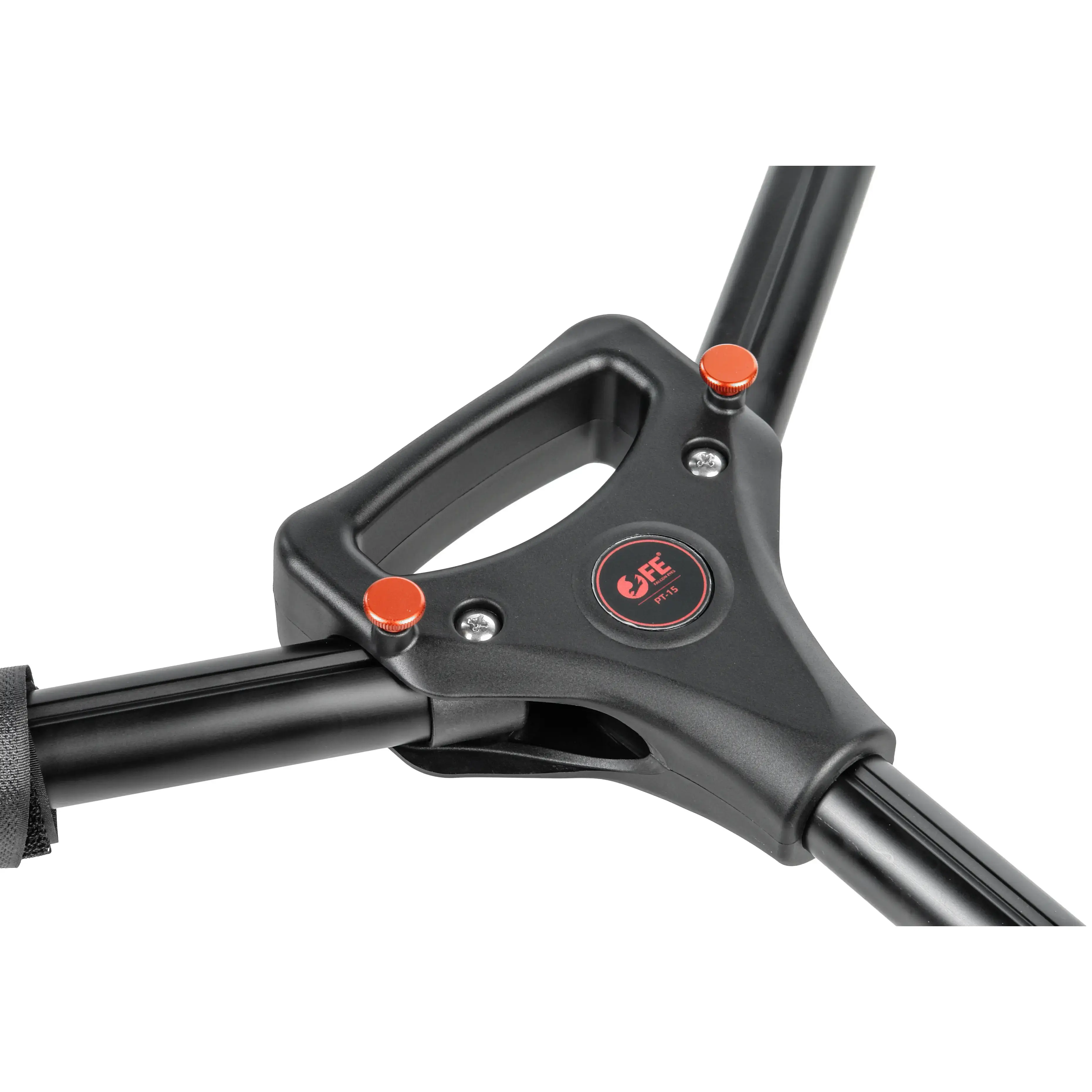 Falcon Eyes PT-15 — это складная алюминиевая тележка для мобильного перемещения штативов с нагрузкой до 15 кг. Ее ключевые преимущества — три колеса с тормозами, регулируемый радиус и легкая, но прочная конструкция.