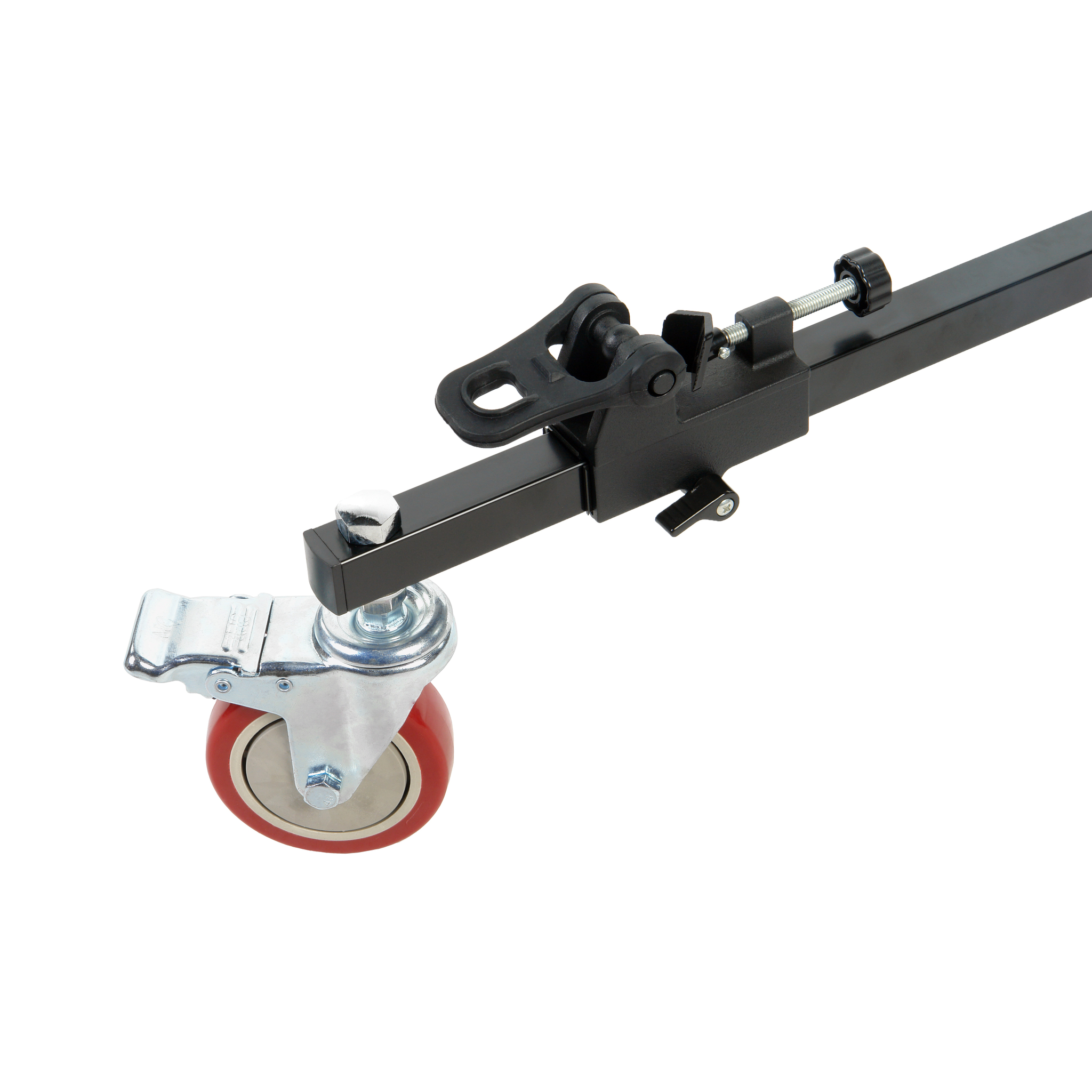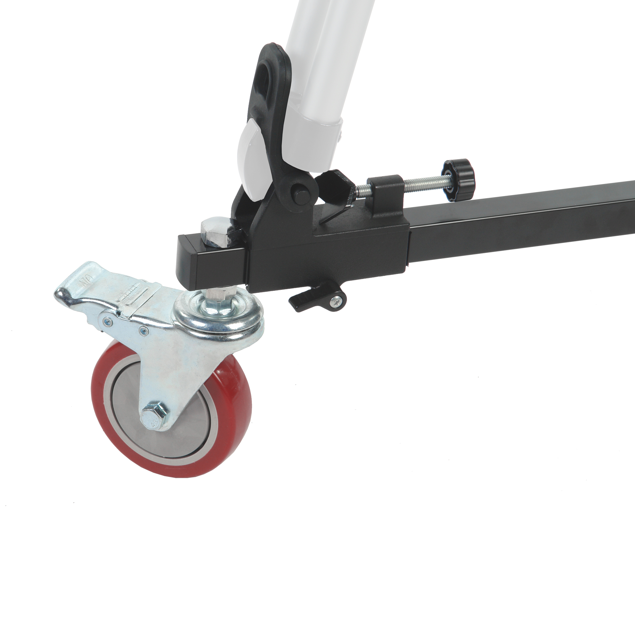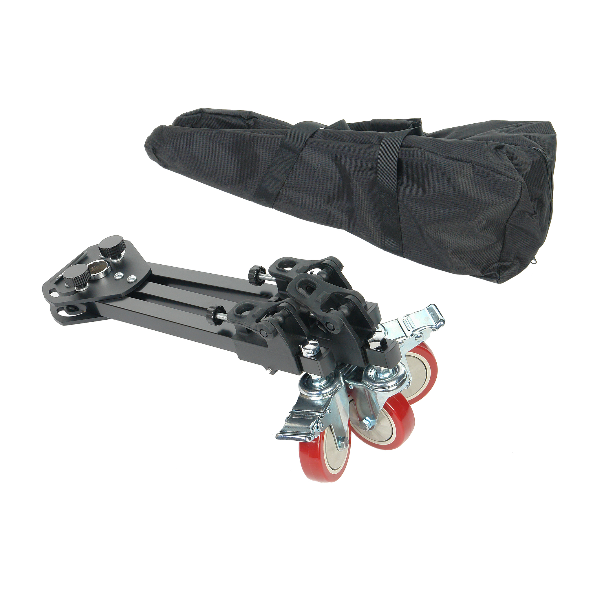 Три больших колеса Ø 100 мм с шарикоподшипниками позволяют тележке плавно перемещаться внутри помещения студии или на улице, преодолевая такие препятствия, как кабель-канал, электрические провода, небольшие неровности. Каждое колесо оснащено индивидуальным тормозом, и вы можете заблокировать любое из колес, какое будет удобнее.
