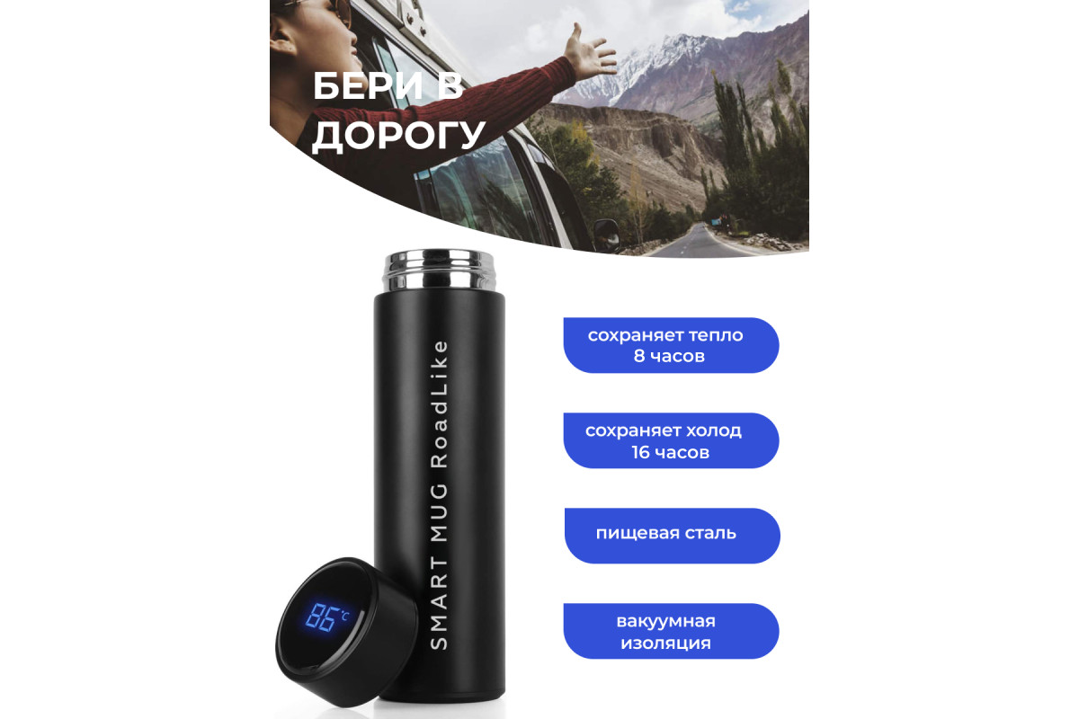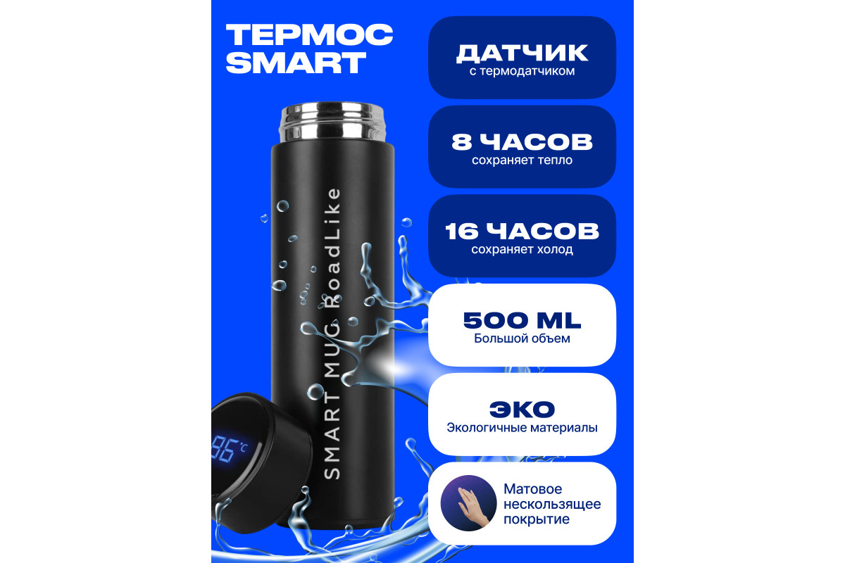 Термос с датчиком RoadLike Smart - умный термос с термодатчиком. Выполнен из прочной нержавеющей стали, обеспечивает эффективное поддержание температуры жидкости внутри. Термос оснащен сенсорным индикатором температуры, позволяющим отслеживать процесс изменения температуры содержимого. Термос выполнен в нескольких цветах. Для отображения температуры на сенсорном монохромном экране используется встроенный аккумулятор, заряда которого хватает на 80 000+ отображений, его не нужно заряжать или менять батарейку. Экран автоматически отключается через 3-4 секунды.