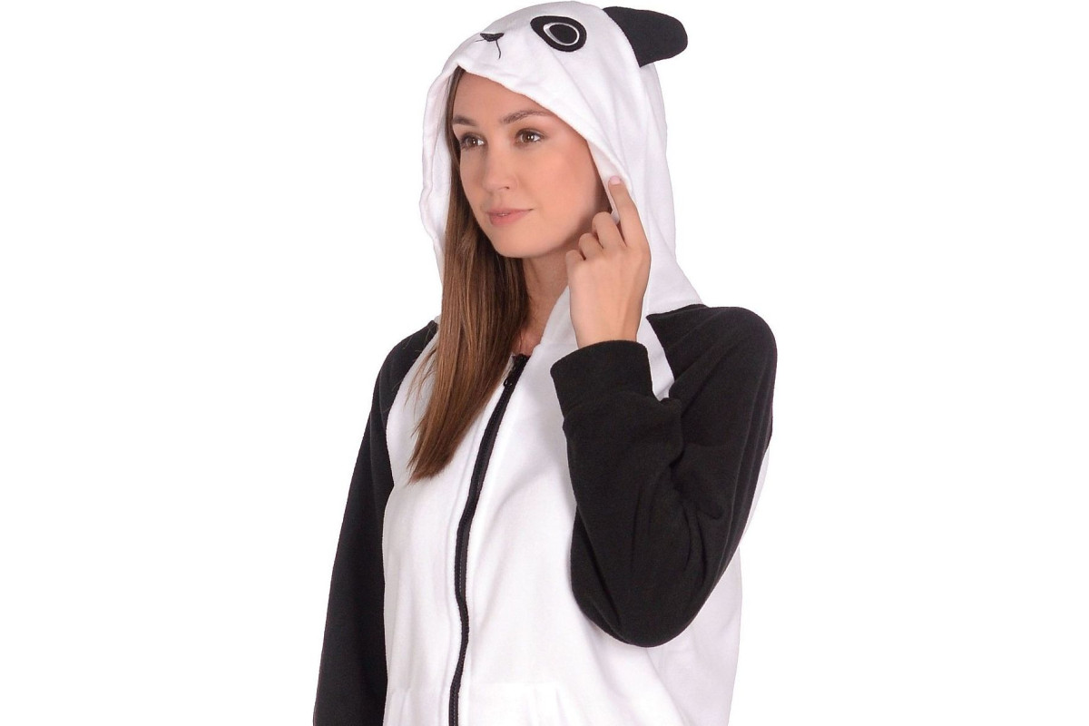 Толстовка Кигуруми Панда очень практична, он создана из велософта, хорошо пропускающего воздух, но способного сохранять тепло. Глубокие карманы спереди позволяют погреть руки в холодную погоду, или сложить туда необходимые вещи. Толстовка спереди на молнии, на рукавах и внизу есть резинка. Капюшон не просто согревает, но и выполнен в форме мордочки панды, что придает изделию большую оригинальность, чем у обыкновенной толстовки.