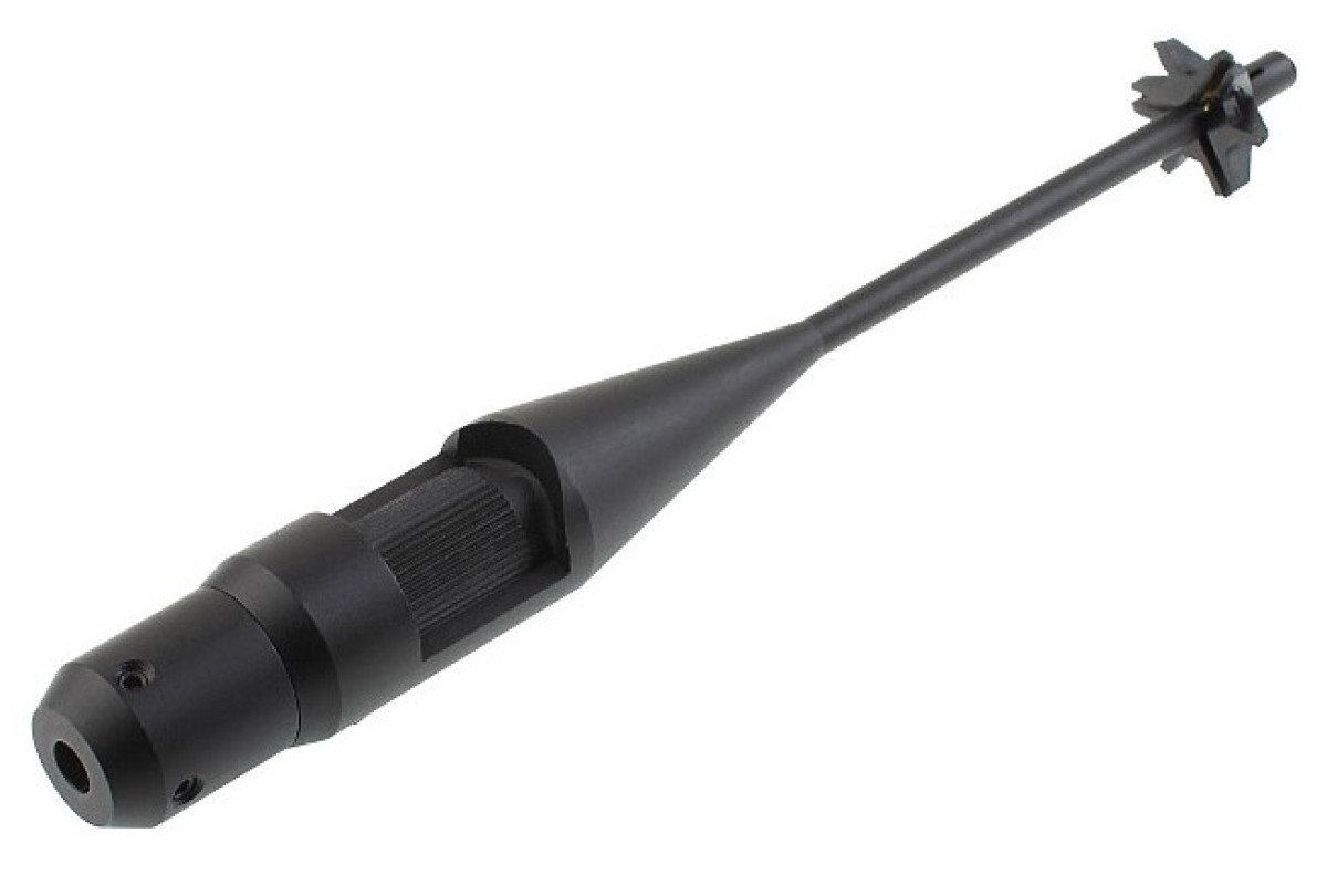 Корпус Veber Boresighter 177-78RD изготовлен из цельной алюминиевой заготовки на современном прецизионном CNC оборудовании. Жёсткий хвостовик диаметром 4.3 мм имеет на конце резьбу для установки наконечников-фиксаторов, входящих в комплект. Наконечники-фиксаторы вставляются в канал ствола со стороны дульного среза, они предназначены для удержания и центровки хвостовика Veber Boresighter 177-78RD в канале ствола.