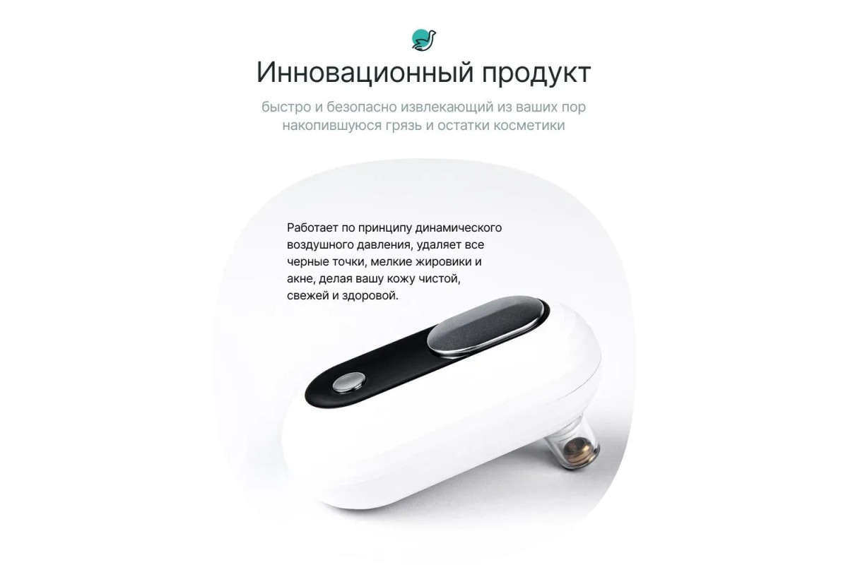 На помощь в борьбе с черными точками, воспалениями, акне и другими неприятностями приходит новый вакуумный очиститель пор с дополнительной функцией теплого компресса. Это инновационный продукт, который быстро и безопасно извлекает из ваших пор накопившуюся грязь и остатки косметики. Работая по принципу динамического воздушного давления, очиститель пор удалит все черные точки, мелкие жировики и акне, делая вашу кожу чистой, свежей и здоровой.