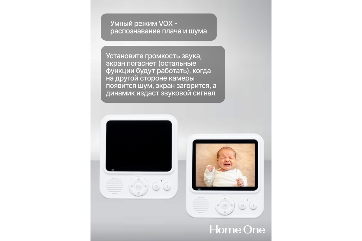 Видеоняня Baby born Home One — идеальный помощник для родителей новорожденных и малышей. При этом беспроводная радионяня сочетает в себе функции, необходимые для обеспечения ребенку максимальной безопасности и комфорта. Поворотная камера с функцией ночного видения высокого качества позволяет следить за малышом в темноте или условиях недостаточного освещения. Дальность сигнала до 300 метров в открытом пространстве гарантирует возможность наблюдения за новорожденным из любого уголка дома или квартиры. Благодаря тому, что беспроводная видеоняня работает без подключения к wi-fi или интернету, она подходит для использования в любом месте, будь то поездки за город или в отпуск. Умная система VOX позволит родителям отдохнуть — при обнаружении звука и движения ребёнка родительский блок с экраном выйдет из спящего режима и оповестит.