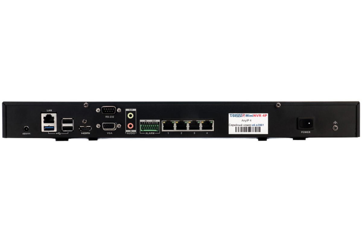 Сетевой видеорегистратор TRASSIR MiniNVR AnyIP 9-4P – это полностью готовое к использованию высокофункциональное решение, предназначенное для расширения существующих и/или построения новых комплексов охранного телевидения на базе IP-видеокамер под управлением TRASSIR OS (Linux). Устройство позволяет подключить до 9 сетевых видеокамер любого поддерживаемого производителя с разрешением записи и отображения до 5 Мп (суммарный битрейт до 256 Мбит/с).