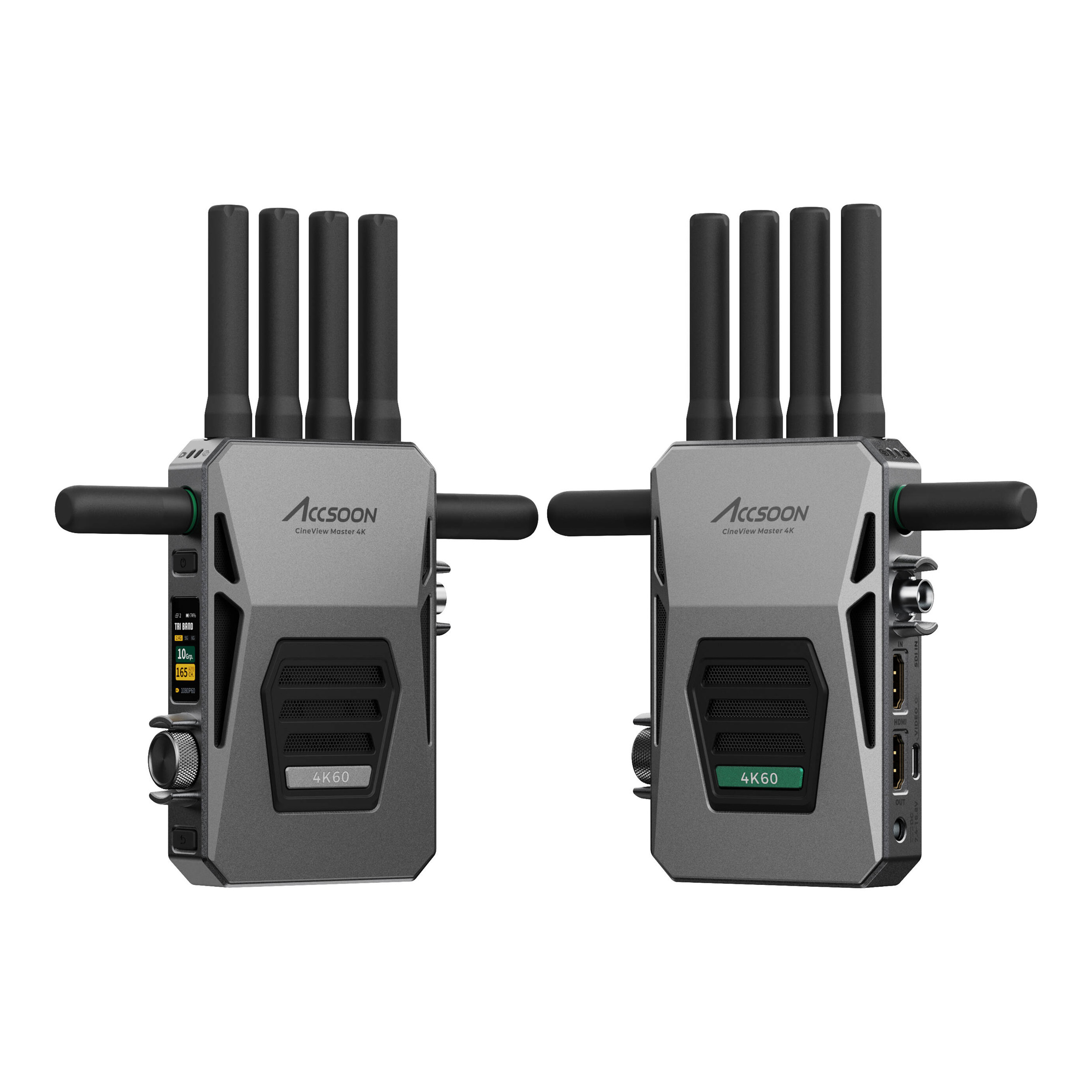 Система беспроводной передачи видео Accsoon CineView Master 4K упрощает беспроводную передачу видео 4K с улучшенным пользовательским интерфейсом и большим радиусом действия, чем у предыдущих моделей: до 2,5 км от передатчика к приёмнику с задержкой всего 35 мс при разрешении 4K60 (менее 25 мс при FHD). Соединения на приёмнике включают выходные порты 3G-SDI и HDMI. Кабельное подключение к передатчику включает входные порты 3G-SDI и HDMI, проходной выход HDMI и видеовыход USB-C для устройств iOS.