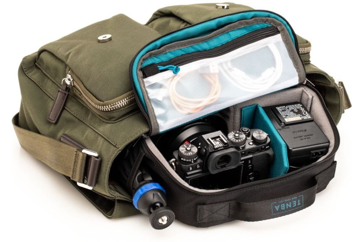 На внутренней стороне крышки расположен карман с полупрозрачным окном на молнии для аккуратного размещения мелких аксессуаров — карт памяти, светофильтров, кабелей, аккумуляторов и т. п.