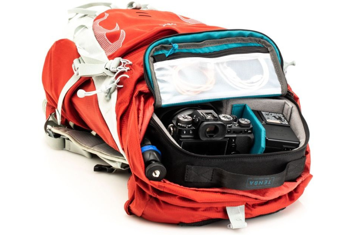 Второй вариант доступа рекомендуется использовать, когда вставка находится в рюкзаке и вам нужно быстро достать камеру с установленным объективом. Конструкция верхней части вставки обеспечивает широкий и удобный доступ к камере.