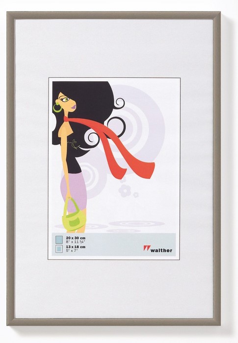 Фоторамка Walther New Lifestyle c пластиковым прямоугольным, слегка закругленным, профилем. Размер профиля: 9ммx14мм. Рамка оснащена шлифованным стеклом, имеет маркированную, не содержащую кислот, вставную подложку. Задняя сторона рамки сделана из МДФ. Используются прочные и простые в использовании поворотные замки. Приспособление для подвешивания - в поворотном зажиме. Есть ножка для установки рамки на поверхность. Цвета: стальной, серебряный, золотой, бронзовый имеют фольгированную поверхность.