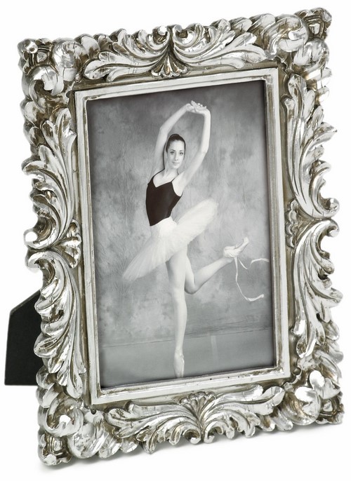 Дизайнерская портретная рамка S.Germain со сложным изрезанным профилем в стиле барокко. Рамка оснащена шлифованным стеклом. Задняя стенка выполнена из МДФ с подставкой. Рамка упакована в подарочную коробку. Формат рамки