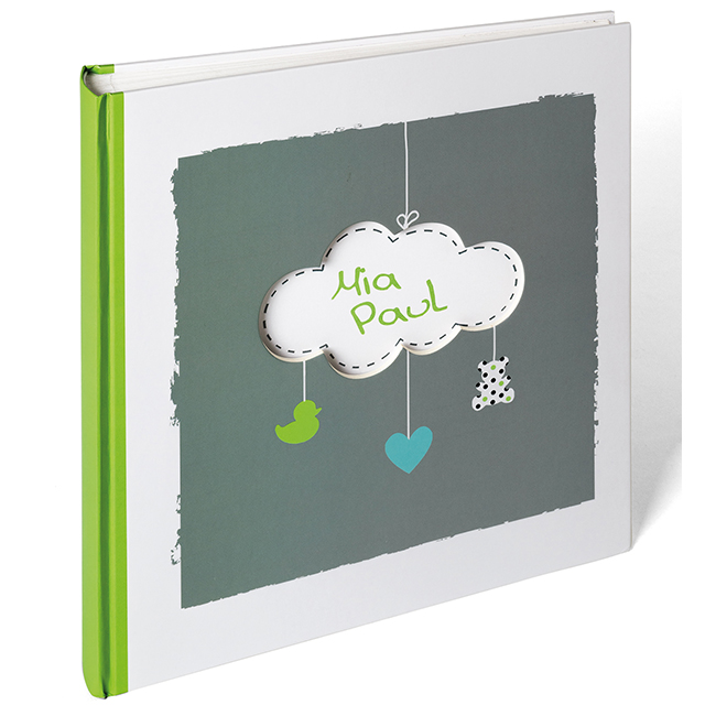 Традиционный детский альбом в книжном переплёте с обложкой из высококачественной ламинированной бумаги с художественным принтом. Альбом украшен вырезом в виде облака для написания личных данных или размещения фотографии.
