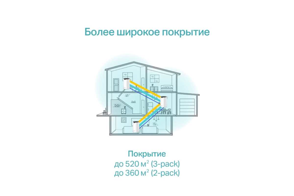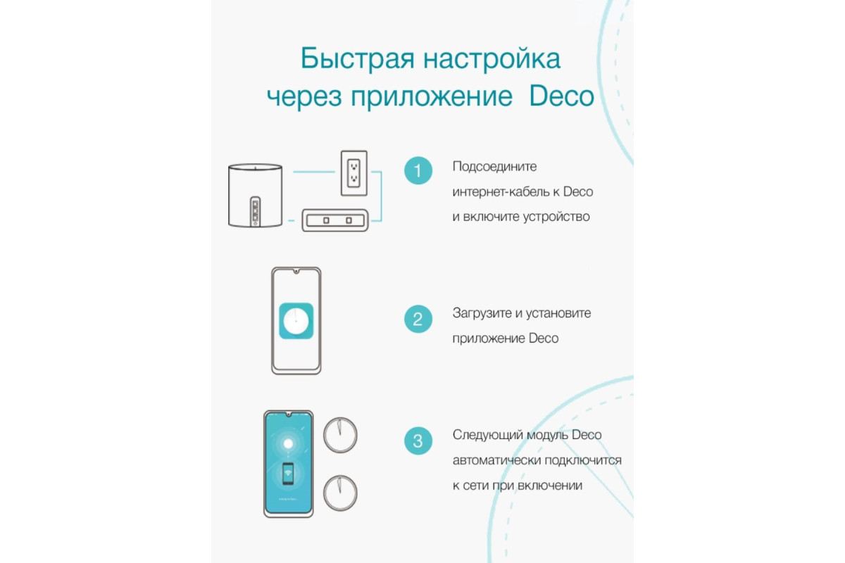 Deco — это простой способ создания качественного Wi-Fi в каждой точке вашего дома. Используйте быстрое и стабильное подключение на площади до 520 м2. Благодаря проводному и беспроводному подключению устройства Deco работают как единое целое для обеспечения максимально скоростного и непрерывного Wi-Fi. Нужно увеличить зону покрытия сети? Просто добавьте ещё один модуль Deco.