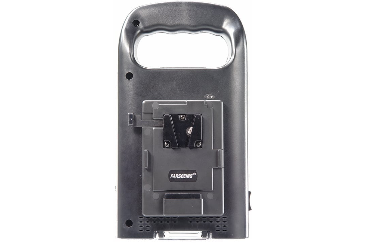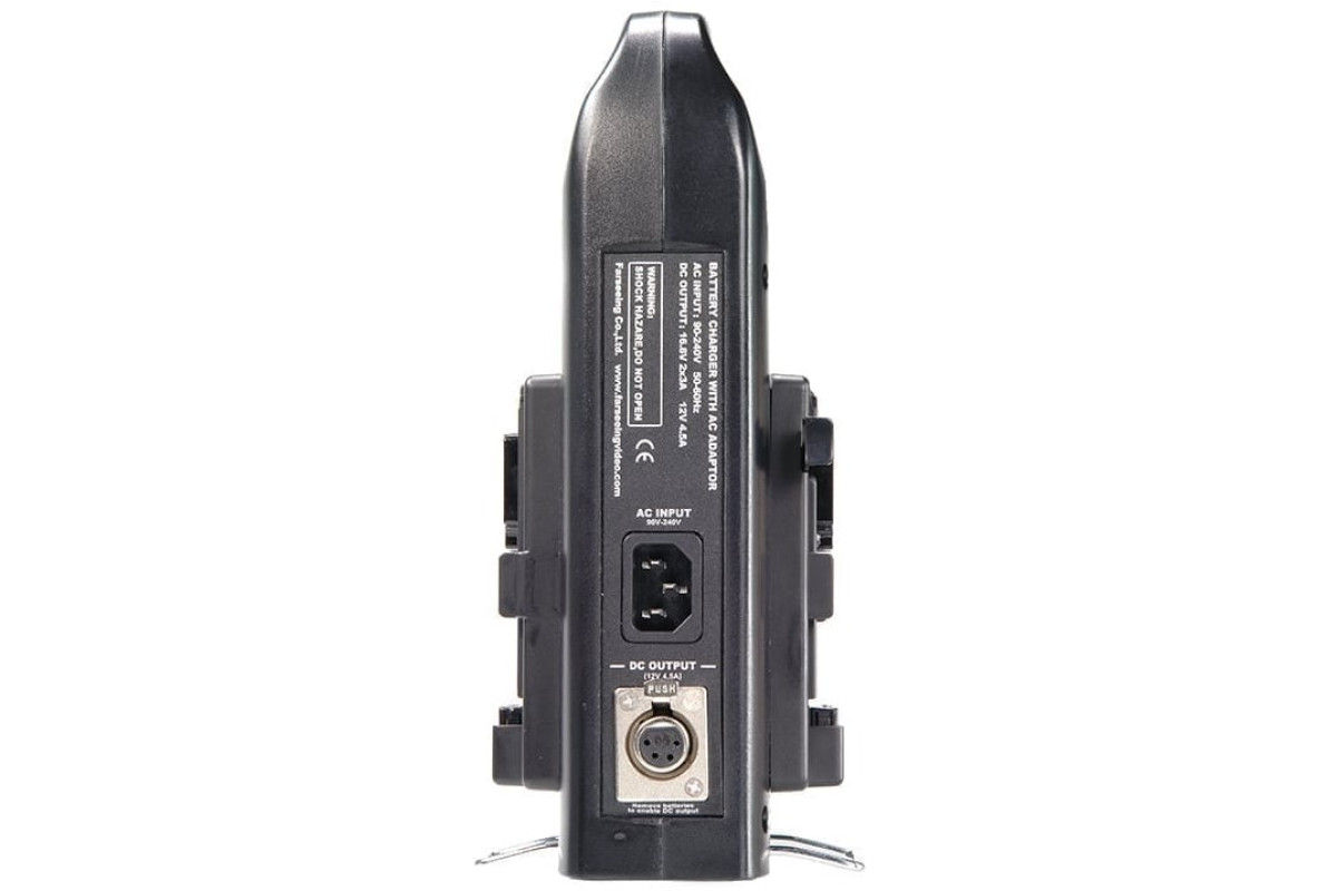 Данное устройство предназначено для последовательной зарядки двух аккумуляторов с разъемом V-Mount или прямого питания оборудования через разъем XLR-4 pin (до 100 Вт, 15 В, 4.5 А). Зарядное устройство работает в двух режимах: заряд аккумуляторов V-Mount/питание через XLR. С помощью переключателя расположенного на торце вы можете осуществить выбор режима. Активное охлаждение обеспечивает встроенный в корпус вентилятор. Для удобства эксплуатации на корпусе предусмотрена рукоятка с выемками под пальцы и складные ножки. Корпус изготовлен из ударопрочного пластика. В комплекте кабель питания и кабель XLR.