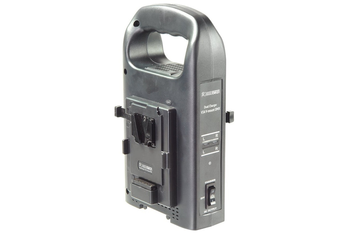 GreenBean DualCharger V3A V-mount – зарядное устройство позволяющее зарядить одновременно два аккумулятора V-Mount (16.8 В, 3A), питание оборудования через разъем XLR (15 В, 4.5 А).