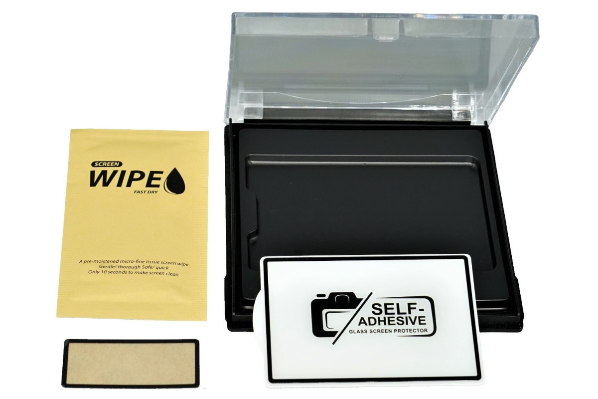 Самоклеящееся защитное закаленное стекло на экран камеры. Подходит для сенсорных и поворотных экранов. Обеспечит защиту экрана от грязи, пыли, царапин, сколов , трещин и износа. В комплекте также идет защитная пленка для верхнего дисплея камеры.