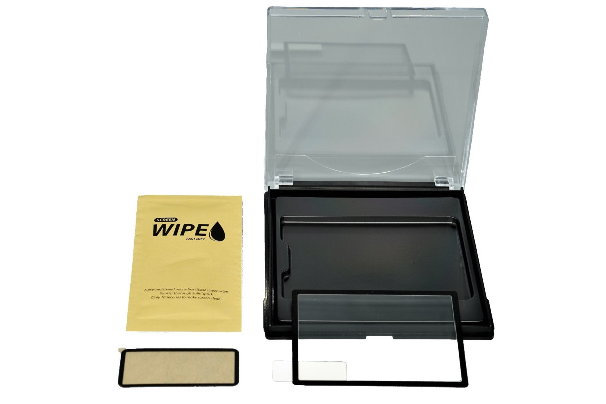 Самоклеящееся защитное закаленное стекло на экран камеры в металлизированной оправе. Подходит для сенсорных и поворотных экранов. Обеспечит защиту экрана от грязи, пыли, царапин, сколов , трещин и износа. В комплекте также идет защитная пленка для верхнего дисплея камеры.