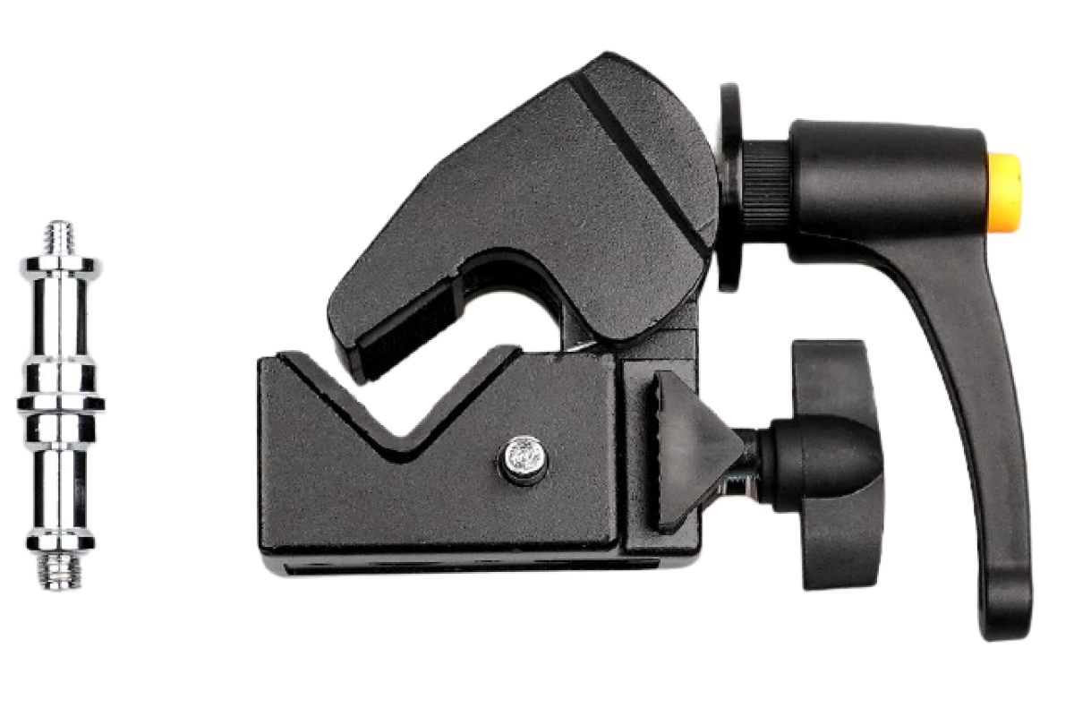 Зажим SuperClamp с возможностью установки на студийные стойки. Адаптер для установки 5/8, 1/4 и 3/8 в комплекте.