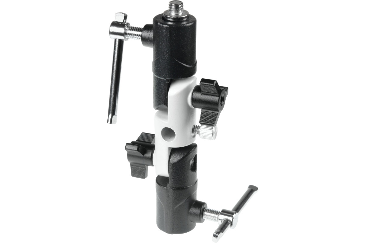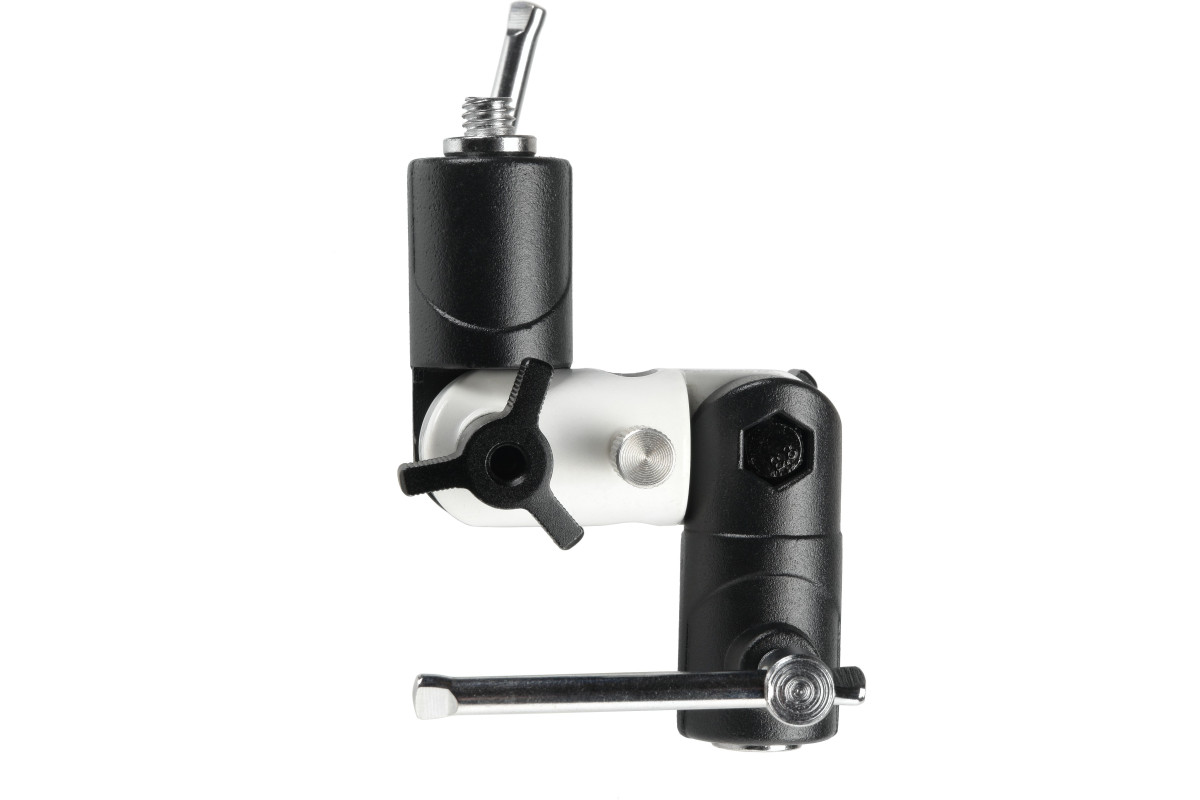 Зажим Falcon Eyes CLD-30 шарнирный – универсальный наклонный кронштейн для фото/видео оборудования, устанавливается на стойки со стандартным шпиготом 5/8". Благодаря комплектным адаптерам-шпиготам CLD-30 может также устанавливаться на риги, держатели или другие опоры с внешней и внутренней резьбой 1/4" и 3/8". Помогает зафиксировать аксессуары для съемки на шпиготе 5/8" (например такие, как перекладины), а также установить осветители, микрофоны, видеомониторы и другое оборудование с внутренней резьбой 1/4" и 3/8".
