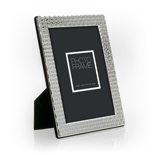 Металлическая рамка ZEP Silver Frame с полированной отделкой и рельефным декорированным профилем, выполнена в элегантном классическом стиле. У рамки бархатная спинка и ножка для установки на поверхность. Упакована в коробку.