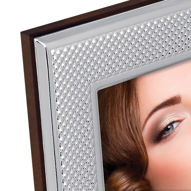 Фоторамка ZEP серия SILVER PLATED сделана в Италии из посеребренного алюминия. Для обработки поверхности используется напыление серебром. Такое покрытие характеризуется высокой прочностью и устойчивостью к окислению. Задник рамки выполнен из дерева