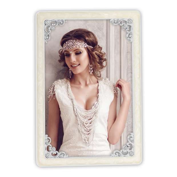 Металлическая рамка ZEP Bernini имеет глянцевую отделку перламутровым профилем, украшенным классическим декором с блеском. Настольная. Имеет бархатный задник. Упакована в коробку.
