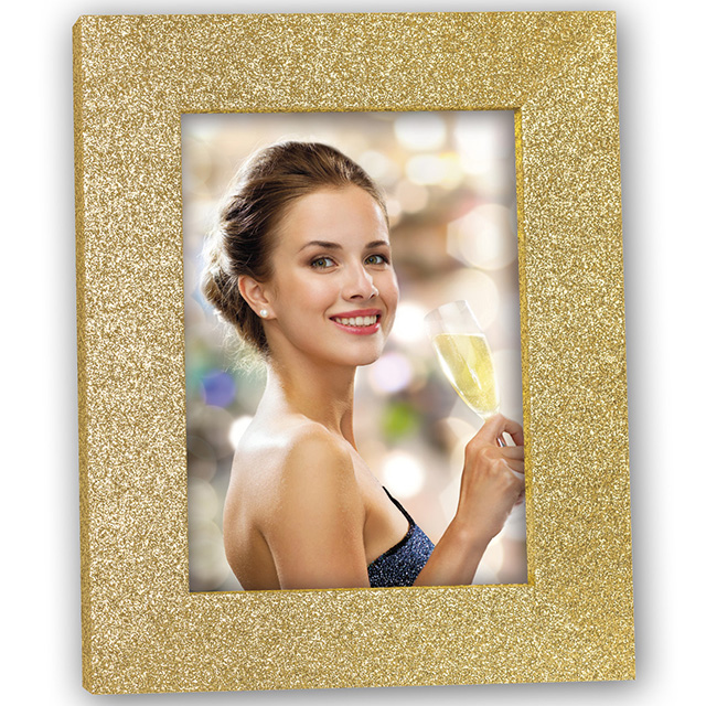 Деревянная фоторамка Zep Broadway Gold золотистого цвета с эффектом блеска. Размещение настольное/настенное. Формат 10x15.