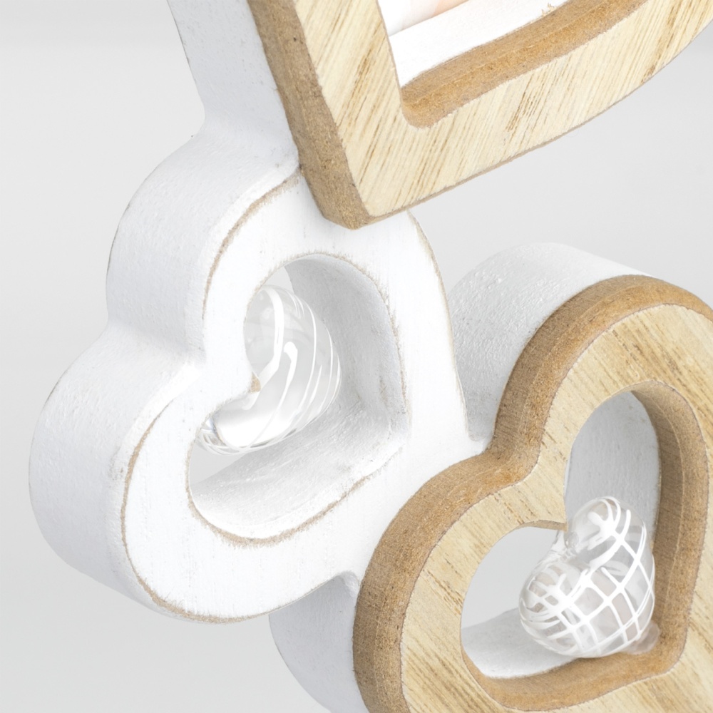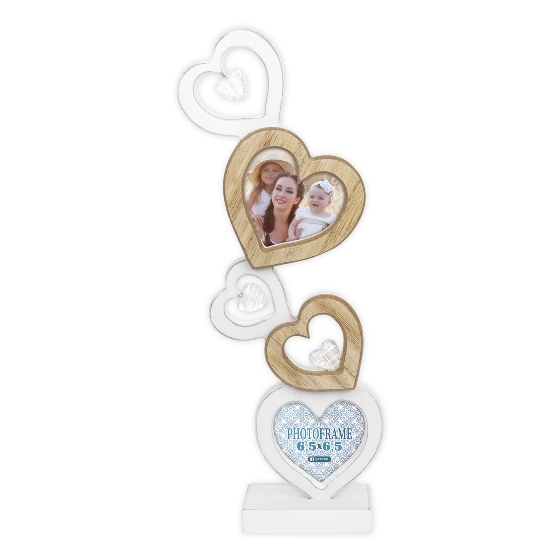 Деревянная рамка-галерея ZEP Edel в коричневом и белом цвете выполнена в виде сердец на подставке. 2 сердца для фото и 3 сердца с 3D украшениями в виде прозрачных сердечек. Размещение настольное. Упакована в коробку.