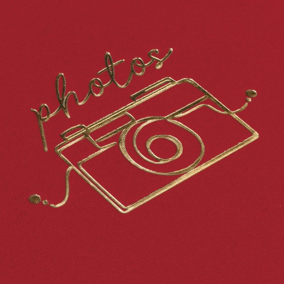 Магнитный фотоальбом ZEP Oliver с металлической спиралью золотистого цвета. У него бумажная обложка с тиснением золотом в виде фотоаппарата и надписью "photos". Устанавливается на стол.