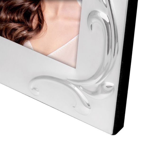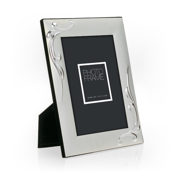 Металлическая рамка с посеребрением ZEP Silver Frame имеет матовую отделку, декорирована рельефным профилем, выполнена в элегантном классическом стиле. У рамки бархатная спинка и ножка для установки на поверхность. Упакована в коробку.