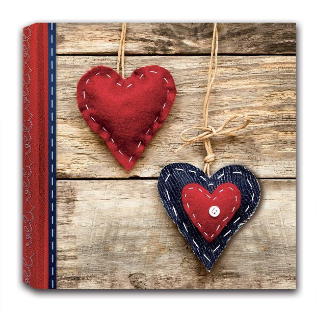 Традиционный альбом в книжном переплёте с обложкой из ламинированной бумаги. Размер альбома: 32x32см, в альбоме 40 белых, не содержащих кислоты страниц, белые пергаминовые межстраничные листы. Имеет 1 ил.стр.с принтом в виде сердечек. Для крепления фотографий необходимы аксессуары (стикеры, уголки, клей). В одном альбоме можно совмещать разные форматы фото. Альбом упакован в коробку красного цвета.