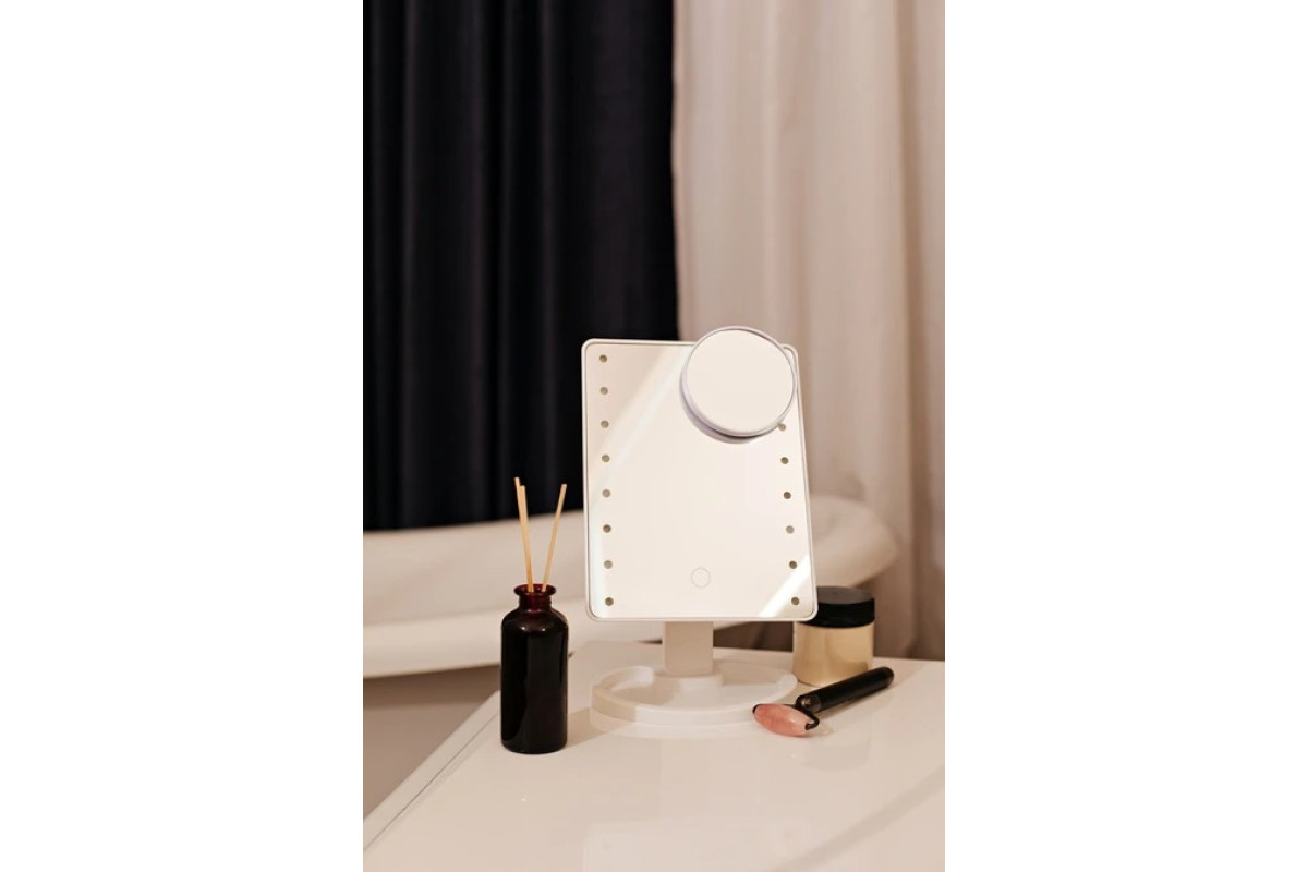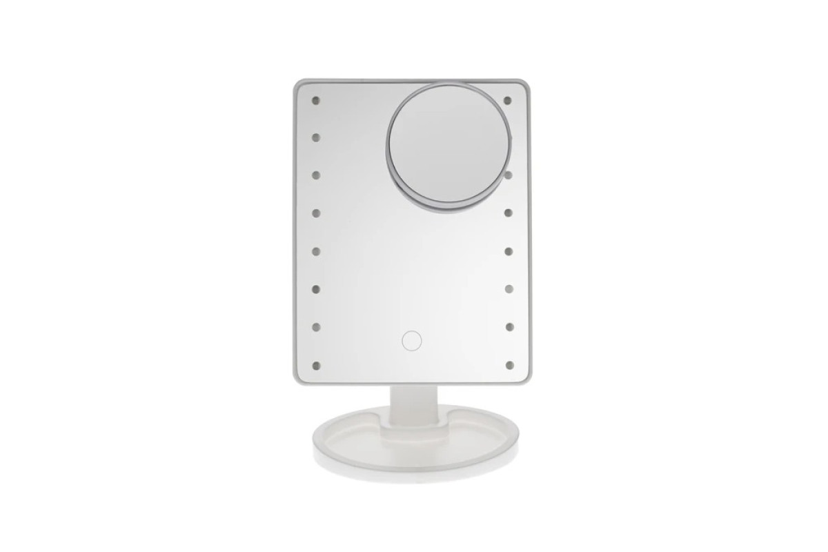 Косметическое зеркало CleverCare с яркой LED-подсветкой и дополнительным съемным зеркальцем с увеличением 5Х сделает ваши ежедневные процедуры проще и приятнее. 16 LED-лампочек, расположенных по периметру зеркальной поверхности достаточно яркие, чтобы разглядеть каждую деталь на лице и нанести идеальный макияж. При этом они не слепят глаза, а сенсорная кнопка на зеркале позволяет регулировать уровень света в зависимости от Ваших предпочтений.