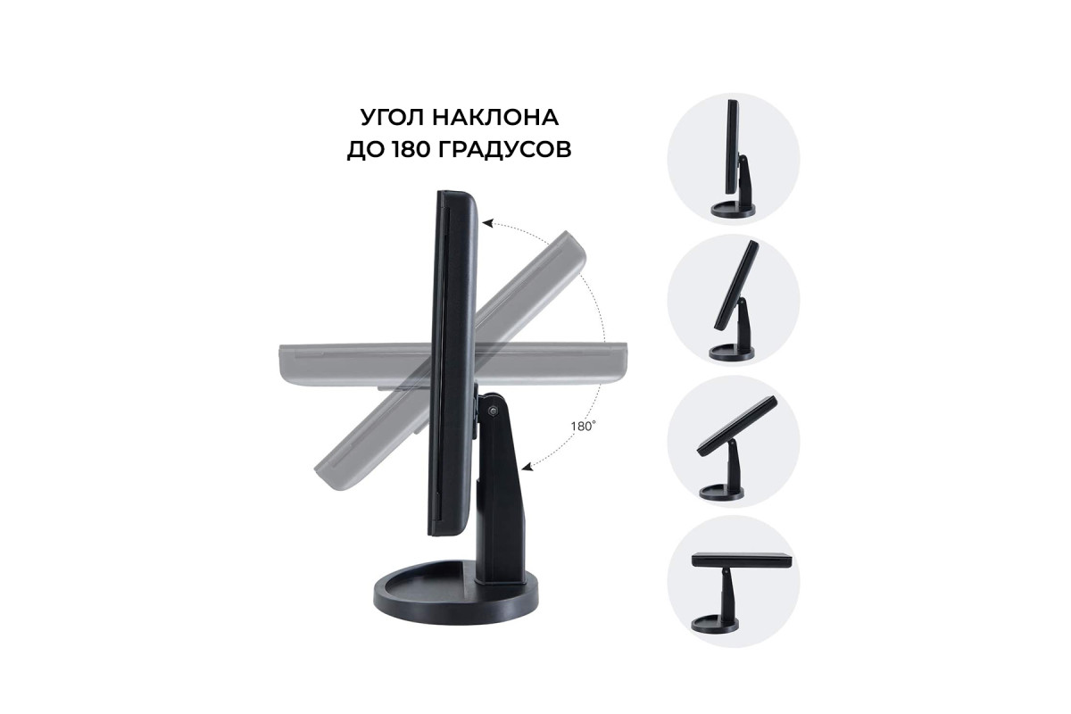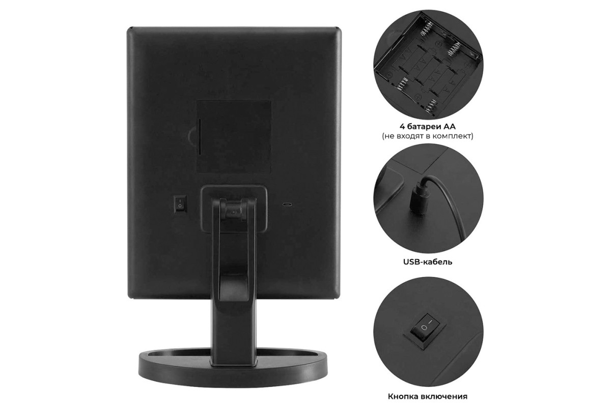 Раскладное зеркало CleverCare с яркой LED-подсветкой и комбинированным увеличением сделает ваши ежедневные процедуры проще и приятнее. 24 LED-лампочки, расположенные по периметру основной зеркальной поверхности достаточно яркие, чтобы разглядеть каждую деталь на лице и нанести идеальный макияж. При этом они не слепят глаза, а сенсорная кнопка на зеркале позволяет регулировать уровень света в зависимости от Ваших предпочтений. Зеркальные поверхности с дополнительным увеличением расположены сбоку от основного зеркала. Это двукратное и трехкратное увеличение, при помощи которого вы сможете рассмотреть то, что не видно в простое зеркало: каждую пору, каждый маленький волосок и каждую линию в макияже. Угол наклона зеркала регулируется до 180 градусов, створки «трюмо» закрываются, позволяя брать зеркало в путешествия, либо делая его компактным в хранении. В основании зеркала есть место для мелочей, что тоже очень удобно. Работает от 4 батареек АА (не входят в комплект), либо от USB.