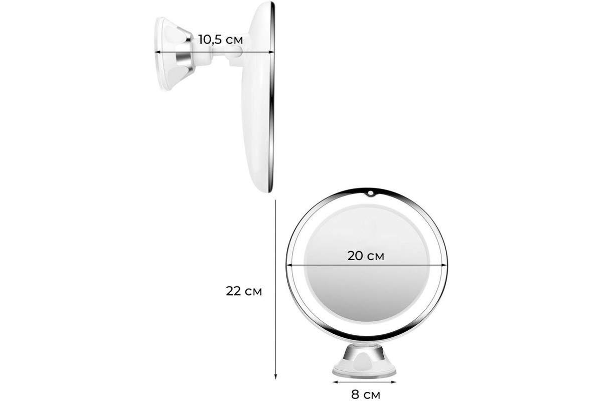 Зеркало косметическое CleverCare Makeup Mirror с подсветкой и пятикратным увеличением идеально впишется в интерьер любой ванной комнаты, может быть установлено как на кафеле, так и на любой другой гладкой поверхности (можно использовать и на косметическом столике в вертикальном положении), благодаря мощной присоске и своему оптимальному размеру. Шарнирное крепление позволяет настроить необходимый угол наклона, в зависимости от Ваших потребностей и особенностей.