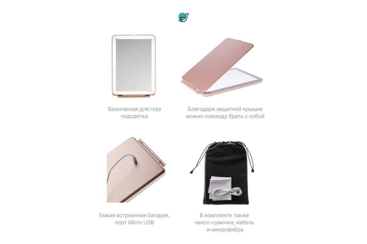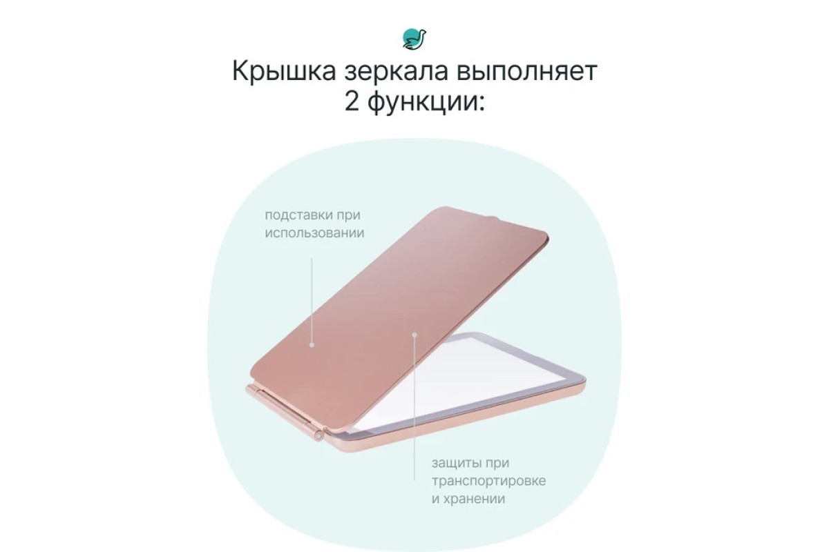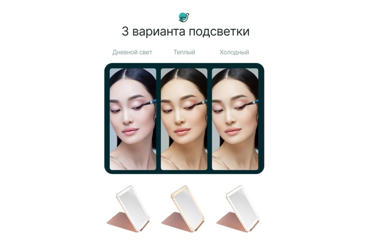 Зеркало HD гарантирует прочность и ясность отражения, 3 режима подсветки помогут рассмотреть каждый миллиметр вашего лица вне зависимости от освещения помещения, а высокая емкость батареи и крышка, надежно закрывающая зеркало легко могут превратить его в туристическое, которое можно везде взять с собой. Простое сенсорное управление и стильный внешний вид влюбляют с первого взгляда.